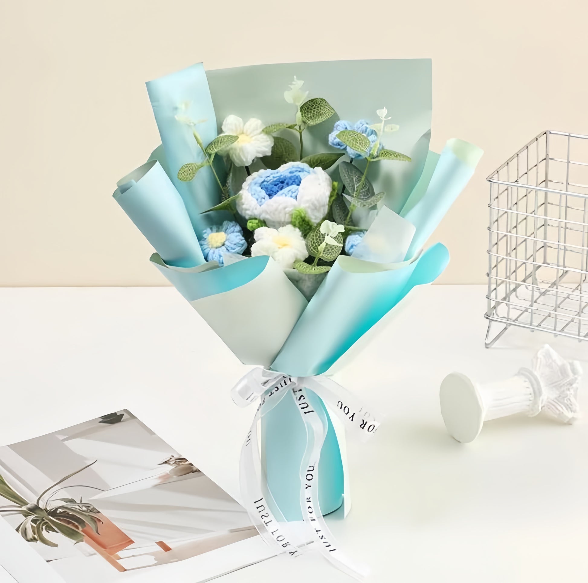 Un ramo único y eterno hecho completamente a mano con delicadas flores de crochet.